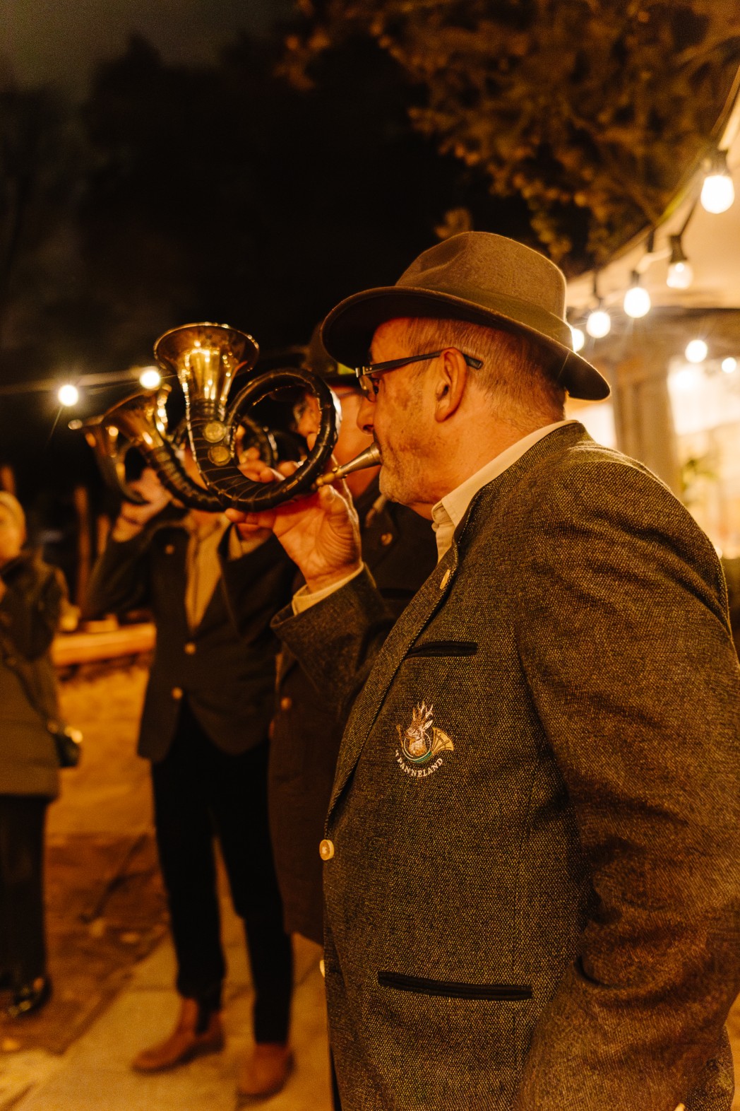 De avond wordt compleet gemaakt door een authentieke, muzikale omlijsting: de klanken van jachtblazers zorgen voor een warme en stijlvolle sfeer die perfect past bij het seizoen en het karakter van Wild & Wijn. Een subtiele beleving die de avond extra bijzonder maakt.